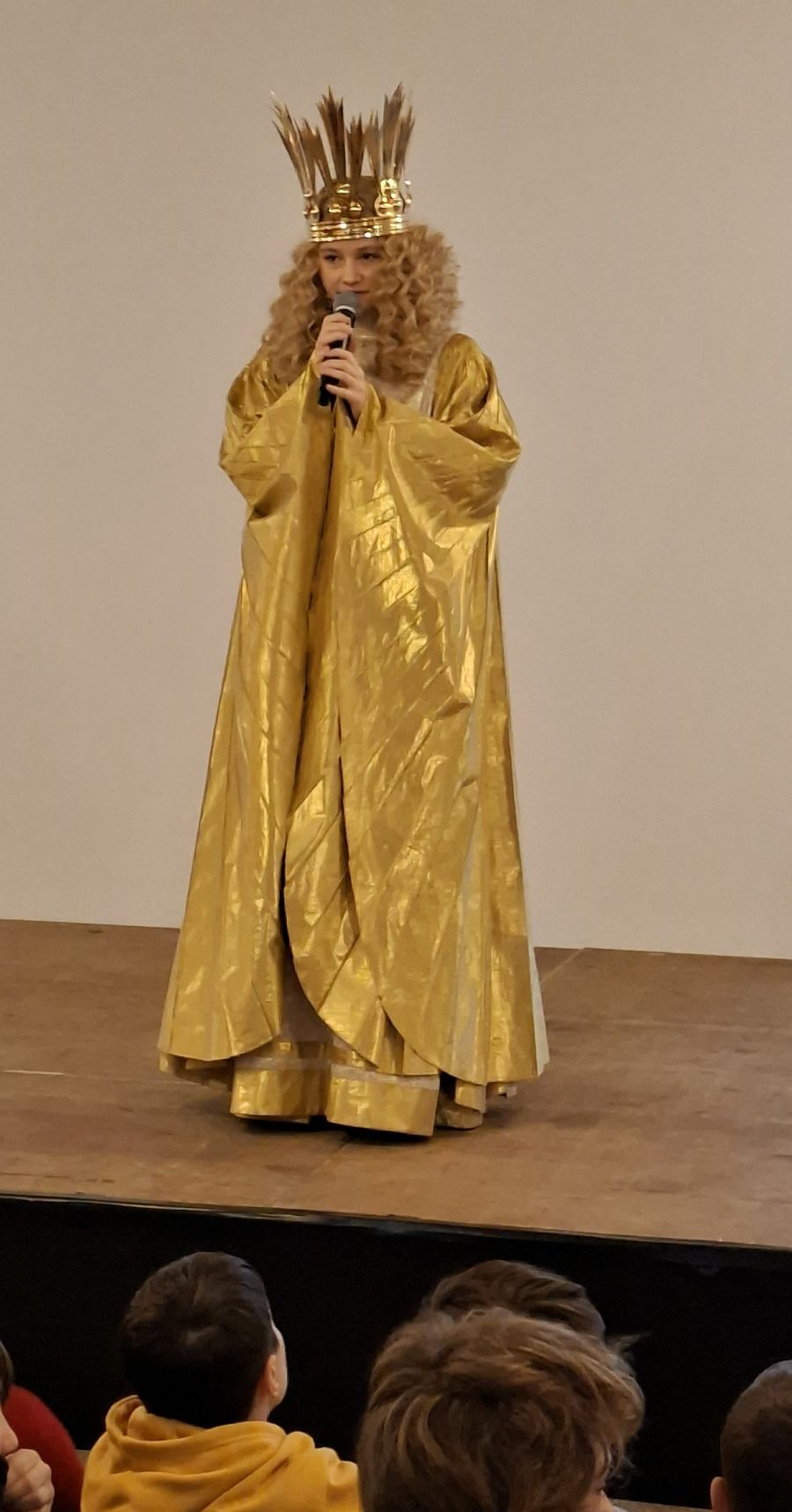 Am Vormittag herrschte ab neun Uhr in der Pausenhalle des Willstätter‑Gymnasiums eine ganz besondere Stimmung. Das Nürnberger Christkind Nora Falk aus der 11a besuchte für eine gute Stunde seine eige…