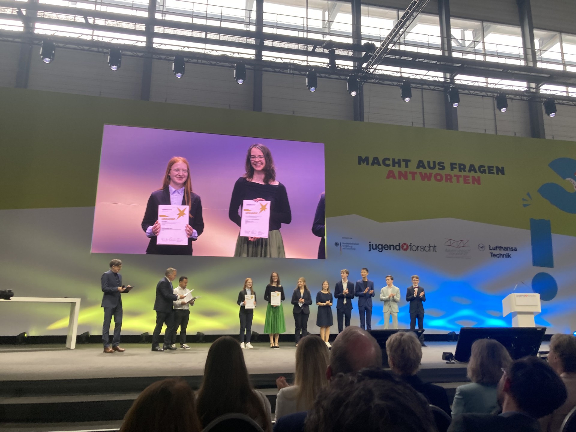 Die Preisverleihung in Hamburg war ein bewegender Moment. Vor über 1000 Gästen, darunter Bundespräsident Frank-Walter Steinmeier, Bundesforschungsministerin Dorothee Bär und Bundesbildungsministerin Karin Prien, wurde unser Engagement gewürdigt. Auch wenn wir uns am Ende knapp geschlagen geben mussten – Platz 2 in ganz Deutschland erfüllt uns mit großem Stolz.